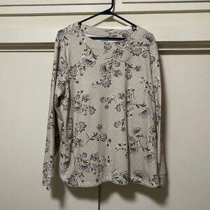 Croft & Barrow long sleeve beige tunic w/flowers, size XXL