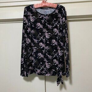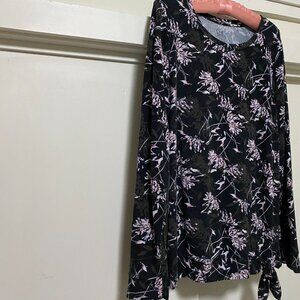 Croft & Barrow long sleeve black tunic w/pink & white, size M