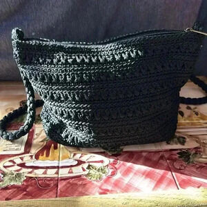 Croft & Barrow Woven Shoulder Crossbody purse, black pre-loved great condition, clean inside and out.