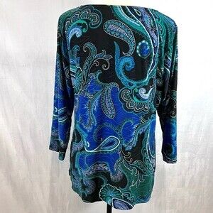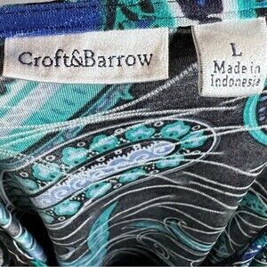 Croft & Barrow royal blue black and green paisley print jacquard top size large