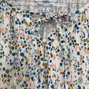 Croft & Barrow size 3X Multi Color Ditsy Floral Tie Front Balloon Sleeve Blouse