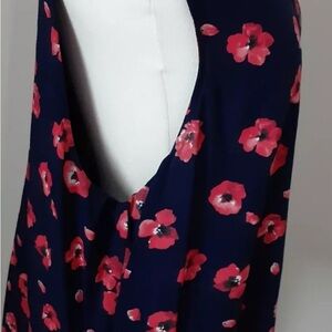 Croft & Barrow sleeveless top Blouse Navy Poppie Pattern XL