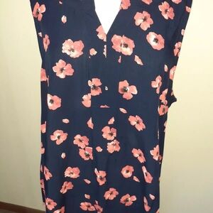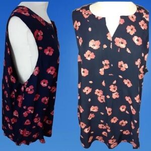 Croft & Barrow sleeveless top Blouse Navy Poppie Pattern XL