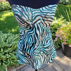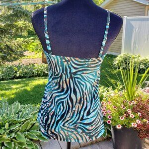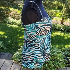 Cute zebra print tankini top in turquoise & brown shades by Croft & Barrow