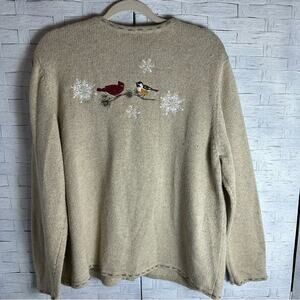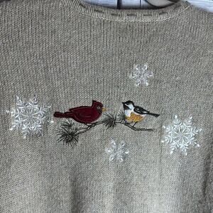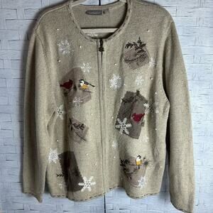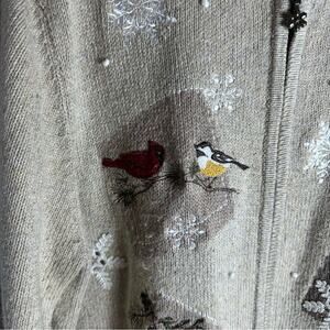 Croft & Barrow vintage Tan Embroidered Zip Up Cardigan Sweater birds Christmas