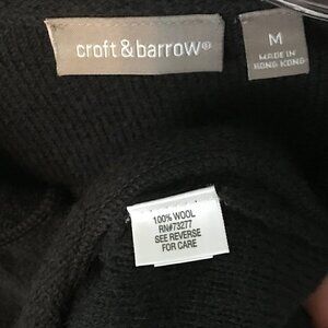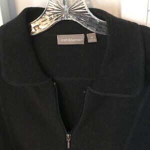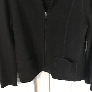 This black 100% wool cardigan /zip jacket / sweater by Croft & Barrow is the perfect weight - not too heavy but warm enough to wear outside as the temperatures drop at night or inside when the AC is blasting. Two front pockets. Excellent preowned condition.