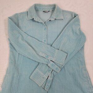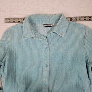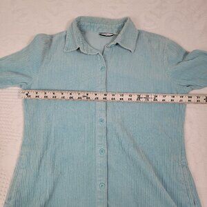 Croft&Barrow long sleeve button down collared women's thick pile corduroy side pockets celeste size small.