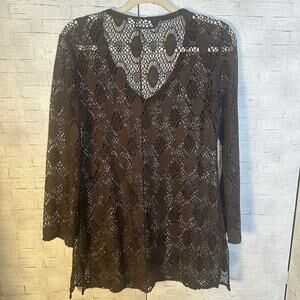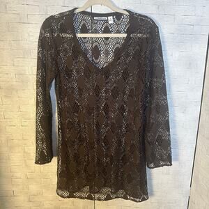 Croft & Barrow women’s top lace sheer brown feminine cover-up Whimsigoth