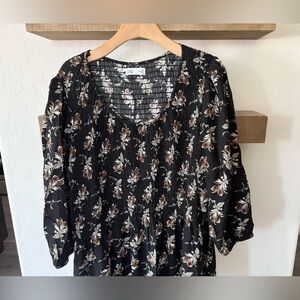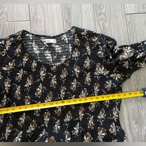 Croft & Barrow|Black floral midi dress, 3/4 sleeve & smocking•••Boho cottagecore