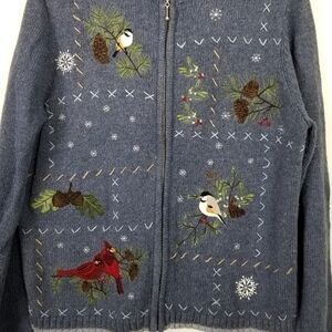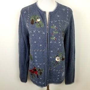 Croft & Borrow Christmas Zip-Up sweater. Women's size Medium. 45% Ramie 45% acrylic 10% silk. In excellent condition.