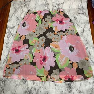 Croft & Borrow Floral Print Brown Pink Skirt Knee Length Size 16