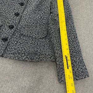 Croft & Borrow Knit Blazer Jacket Button Down Black White Medium Acrylic Polyest