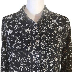 Croft & Borrow Roll Tab Long Sleeve Button Down Damask Pattern Top Size M