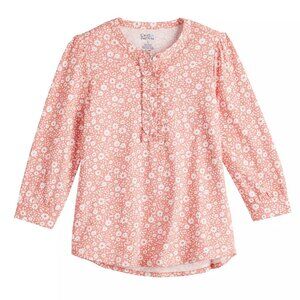 Croft and Barrow Floral Top Womens Size Large Coral White Ruffle Front Blouse