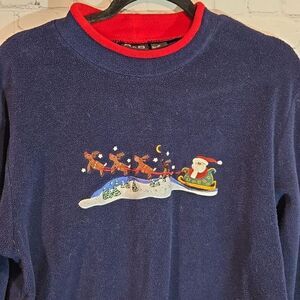 Croft and Barrow Navy Blue Santa fleece size M