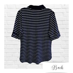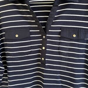 Vacation, Preppy, Cruise, Beach, Nautical, Half Sleeves, Polo, Blue and White Stripe, V-Neck, Adjustable Sleeve Length, Fitted, Casual, Tunic, NWOT, New, Nautical, Coastal,