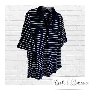 Croft and Barrow Polo Style V-Neck Blue & White Nautical Stripe NWOT