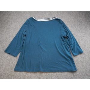 Croft and Barrow Shirt Top Womens XXL Green 3/4 Sleeve Boat Neck Relaxed Fit
