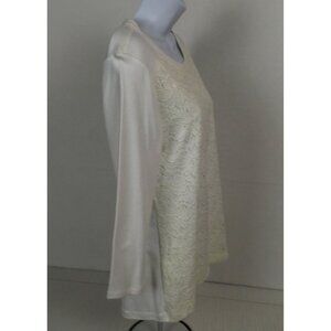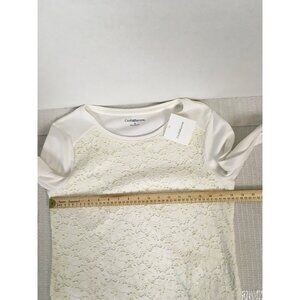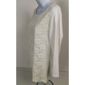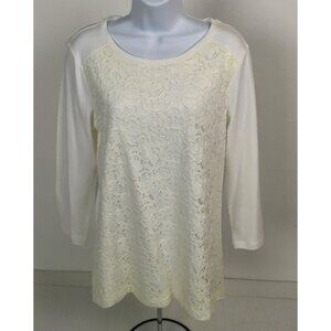 Croft and Barrow Women Top Size Small White with Floral Lace Front Short Sleeves