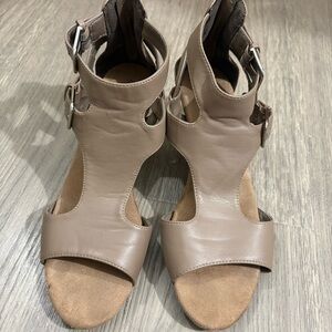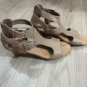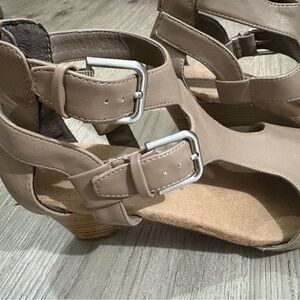 Croft and Barrow w Ortholite Taupe Women's Wedge Heels Sz 9 Zip Buckle Bohemian