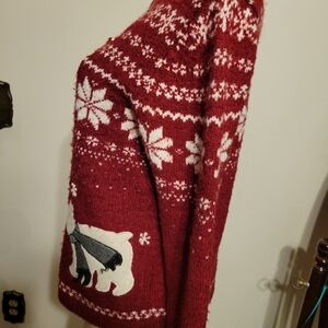 Craft and Borrow Christmas Polar Bear Ugly Sweater Red Large