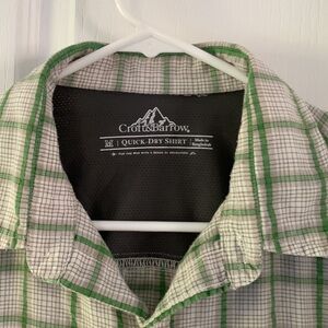 Croft & barrow mens quick dry button up shirt size M cream green plaid pockets