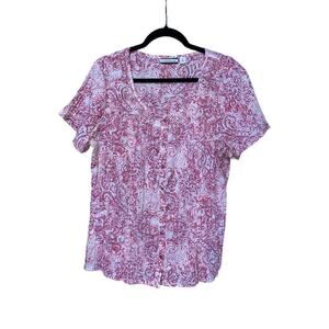 Croft and barrow blouse, short sleeve button up stretchy size XL 57% Polyester 43%cotton