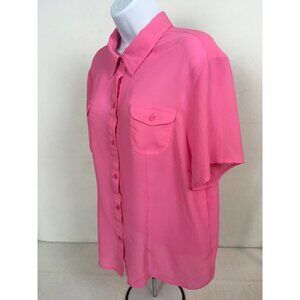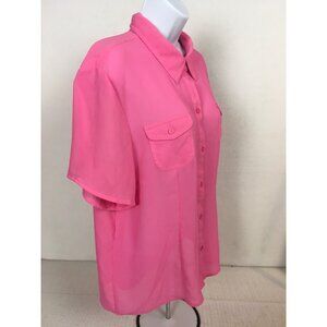 Croft n Barrow Top Women Size XL Pink Button Up Pockets Short Sleeves Semi Sheer