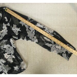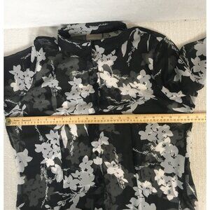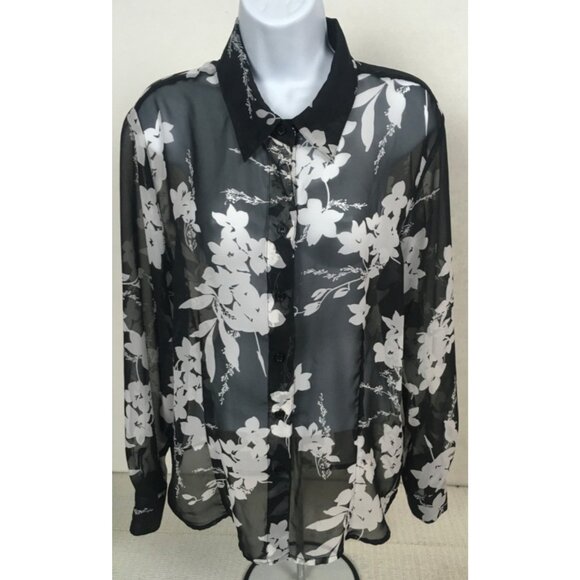 Croft n Barrow Top Women Size XL Sheer Black White Flowers Button up Long Sleeve