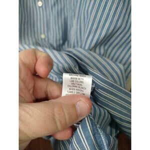 Croft and Barrow men's blue white striped collared long sleeve button shirt in good condition. Lightweight front pocket two button adjustable cuff