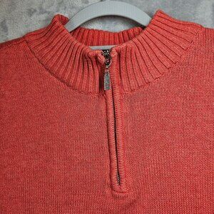 This Croft&Barrow sweater, sized XL, in a peachy orange hue, is perfect for a feminine, business casual look. Made from 100% cotton, it features a tight knit, 1/4 zip, and crew neck.