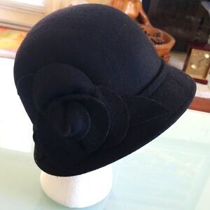 Solid black with big flower. looks like a depression era hat, or a Keystone Cop hat! Super cute and fun! Hatbin5.7
