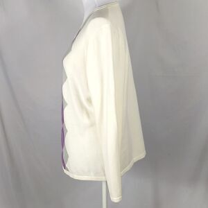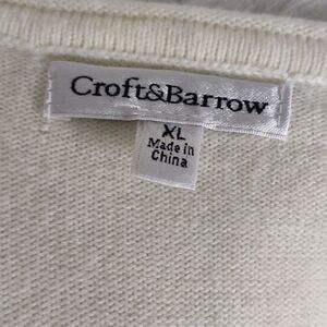 This purple, gray and cream colored argyle Croft & Barrow long sleeve, v-neck knit sweater is a size XL with a pit to pit measuring 23". 100% acrylic and machine washable. Pre-owned and in excellent condition. All offers welcome.