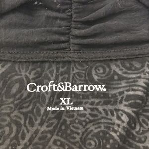 Croft & Barrow lightweight black cardigan size L. Very light fabric with a paisley design. Good preowned condition. See pics for care tags and approximate measurements.