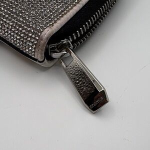 Brand new wallet with rhinestones on the face and design on the back. Clean inside and out. Zipper functional.