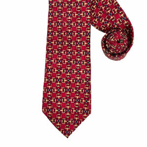 Cromley & Finch Necktie Men's Handmade Red Yellow Chain Pattern All Silk London