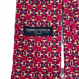 Cromley & Finch Men's Handmade Necktie Red Yellow Chain Pattern All Silk London