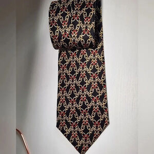 Cromley & Finch 100% Handmade silk tie, red and golden chain link