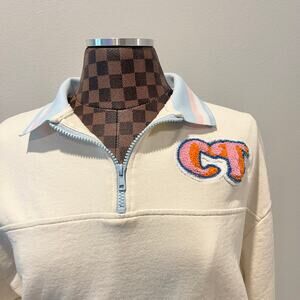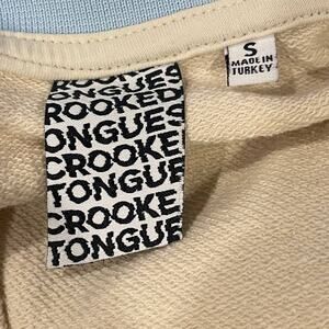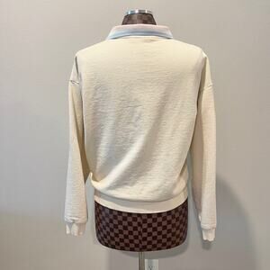 Crooked Tongues Pullover Collared Sweatshirt Small Cream Pastel Asos 1/4 Zip