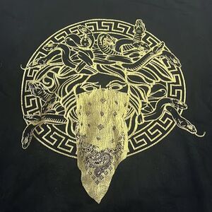 Crooks & Castles crewneck sweater, size XXL for sale. Shirt features gold screenprinted graphics on the front in overall good condition.