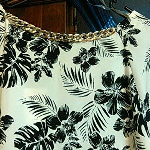 Black and white flower blouse with link chain necklace. Not stretch. True to size.