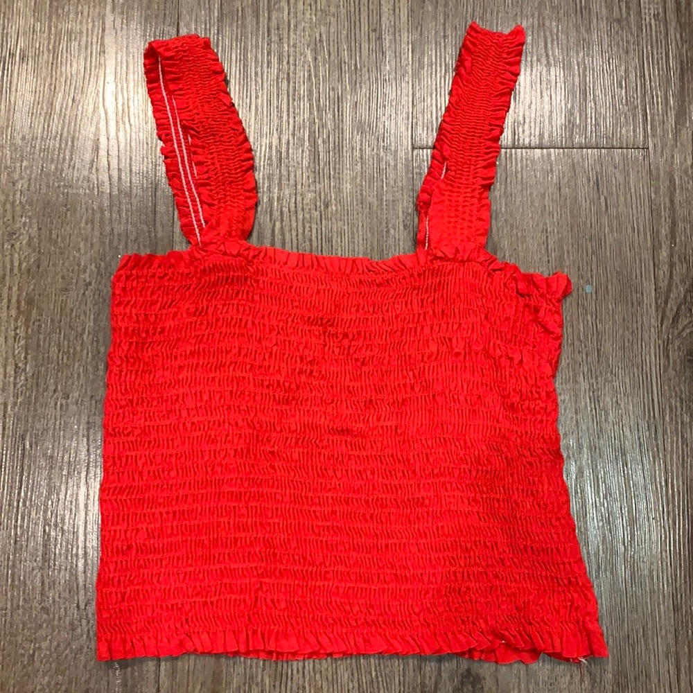 Very stretchy! Cherry red ribbed tank with scalloped sides