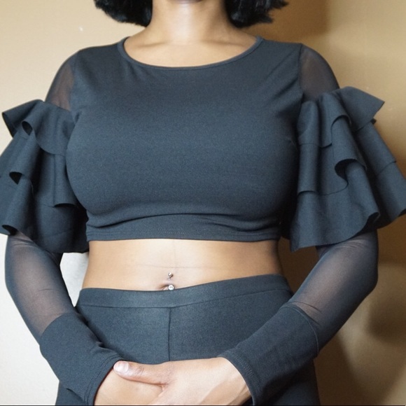 Ruffle crop top Mesh inserts