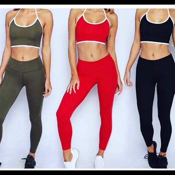 Crop top and stretch bottom. Great for every day wear or for working out.