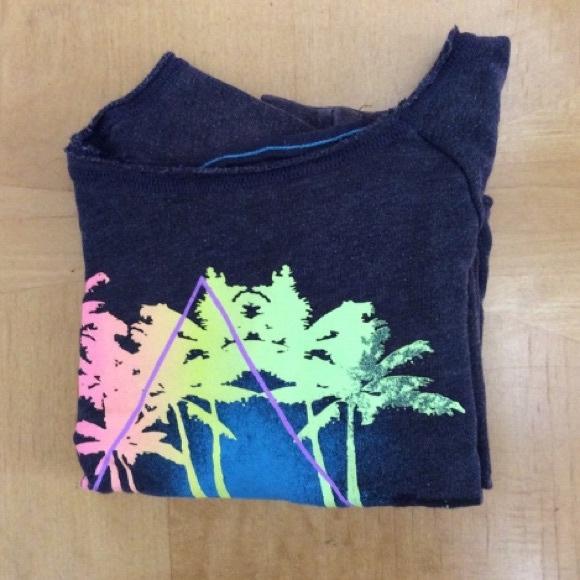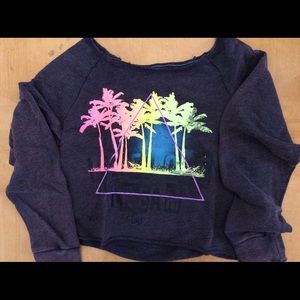 Lightweight gray cropped sweatshirt with a rainbow palm tree print. 💗💛💚💙💜 LIVE LOVE DREAM by AERO