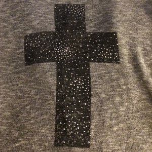 Juniors medium crop sweater, long sleeve, with silver/gray with black cross