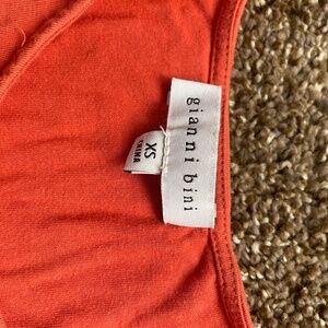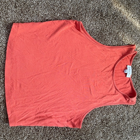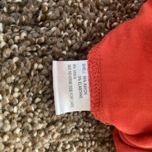 More of a cropped tank style, orangey red color, soft material, smoke free home, bundles and fair offers are more than welcome!