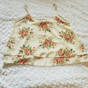 EUC. Only worn once. Floral, flowy spaghetti strap crop top. Pair with a pair of cut off shirts or for more coverage try with high waisted skinny jeans! 100% Polyester. *cut off shorts pictured sold separately or bundle and save*