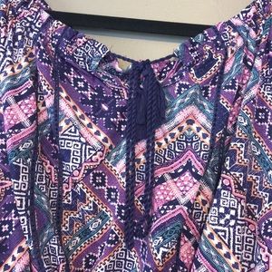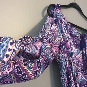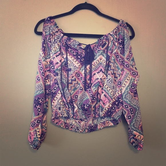 Flowy crop top with banded waist, make it as short as you want it. Has long sleeves with cutouts on the top of the arm.