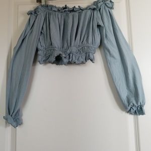 Long sleeve crop top// Color: Grey Teal Size: Small